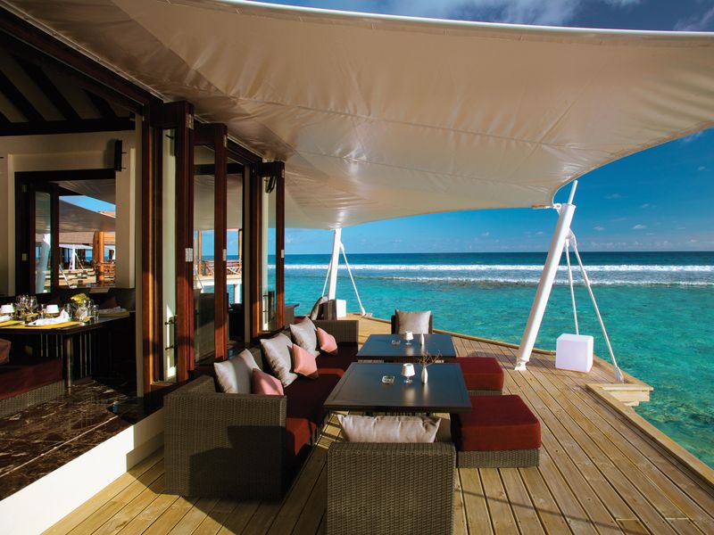 Raz týždenne (hostia víl s bazénmi každý deň) si každý hosť môže vychutnať špeciálnu večeru v reštaurácii Sunset, ktorá podáva ázijské a stredomorské pokrmy a grilované mäsa s nádychom exotiky. Ľahkým snackom a nápojmi sa môžete občerstviť v bare The Liquid a The Sunset, kde je rovnako možnosť objednania obedov jedálneho lístka.